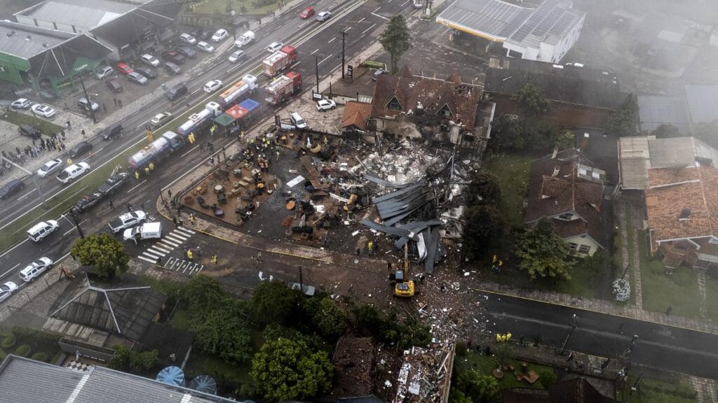 ଦକ୍ଷିଣ ବ୍ରାଜିଲର ଗ୍ରାମାଣ୍ଡେ ସହରରେ ରବିବାର ଏକ ଛୋଟ ବିମାନ ଦୁର୍ଘଟଣାଗ୍ରସ୍ତ ହୋଇ ୧୦ଜଣଙ୍କର ମୃତ୍ୟୁ ଘଟିଛି। ବେସାମରିକ ଅଧିକାରୀଙ୍କ କହିବା ଅନୁଯାୟୀ ବିମାନଟି ଦୁର୍ଘଟଣାଗ୍ରସ୍ତ ହୋଇ ଏକ ଦୋକାନ ଉପରେ ପଡିଯିବାରୁ ୧୫ଜଣ ଆହତ ହୋଇଛନ୍ତି। ଆହତମାନେ ଧୂଆଁରେ ଶ୍ବାସରୁଦ୍ଧ ହୋଇ ଆହତ ହୋଇଛନ୍ତି। ବିମାନଟି ଦୁର୍ଘଟଣାଗ୍ରସ୍ତ ହୋଇ ପ୍ରଥମେ ଏକ କୋଠା ଉପରେ ପଡିଥିଲା ପରେ ଏହା ଏକ ଆସବାବପତ୍ର ବିକ୍ରି ଦୋକାନ ଉପରେ ପଡିଥିଲା।