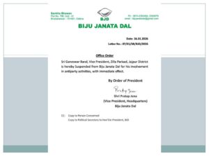 ବିଜେଡିରୁ ଗଣେଶ୍ବର ବରାଳ ନିଲମ୍ବିତ…..