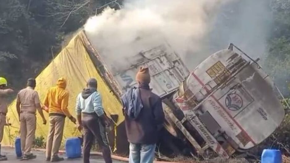 ବାଙ୍ଗିରିପୋଷି ଘାଟିରେ ଆଜି ଏକ ମର୍ମନ୍ତୁଦ ସଡ଼କ ଦୁର୍ଘଟଣା ଘଟିଛି। ଘାଟିରେ ଭାରସାମ୍ୟ ହରାଇ ୨ଟି ଟ୍ରକ୍ ୨୦ ଫୁଟ ତଳକୁ ଖସି ଯାଇଥିଲା। ସେଥି ମଧ୍ୟରୁ ଗୋଟିଏ ଟ୍ରକ୍ରେ ନିଆଁ ଲାଗି ଡ୍ରାଇଭର ଜୀଅନ୍ତା ଜଳି ଯାଇଥିବା ବେଳେ ଅନ୍ୟ ଜଣେ ଡ୍ରାଇଭରଙ୍କ ପତ୍ତା ମିଳୁନି। ମିଳିଥିବା ସୂଚନା ଅନୁସରେ-ଆଜି ସକାଳ ପ୍ରାୟ ୮ଟା ପରେ ଏକ ତେଲ ବୋଝେଇ ଟ୍ରକ୍ ଓ ଏକ ଟ୍ୟାଙ୍କର କେନ୍ଦୁଝରରୁ ବାରିପଦା ଅଭିମୁଖେ ଆସୁଥିଲେ। ମାତ୍ର ବାଙ୍ଗିରିପୋଷି ଘାଟିରେ ତଳକୁ ଓହ୍ଲାଉଥିବା ବେଳେ ପାଖାପାଖି ଥିବା ୨ଟି ଗାଡ଼ି ଭାରସାମ୍ୟ ହରାଇ ବସି ୨୦ ଫୁଟ ତଳକୁ ଖସି ପଡ଼ିଥିଲେ। ଏହାପରେ ତତ୍କ୍ଷଣାତ ତେଲ ବୋଝେଇ ଟ୍ରକ୍ରେ ନିଆଁ ଲାଗି ଜଳିଯିବା ସହ ଡ୍ରାଇଭର ଜଳି ଯାଇଛନ୍ତି। ବିଶୋଇ ଓ ବାଙ୍ଗିରିପୋଷି ଅଗ୍ନିଶମ କର୍ମଚାରୀ ନିଆଁ ଲିଭା କାର୍ଯ୍ୟରେ ନିୟୋଜିତ ହୋଇଛନ୍ତି। ଘାଟି ରାସ୍ତାରେ ଯାତାୟତରେ ବାଧା ସୃଷ୍ଟି ହୋଇଥିବା ବେଳେ ଘଟଣାସ୍ଥଳରେ ବାଙ୍ଗିରିପୋଷି ପୋଲିସ ପହଞ୍ଚି ତଦନ୍ତ କରୁଥିବା ଜଣାପଡିଛି |