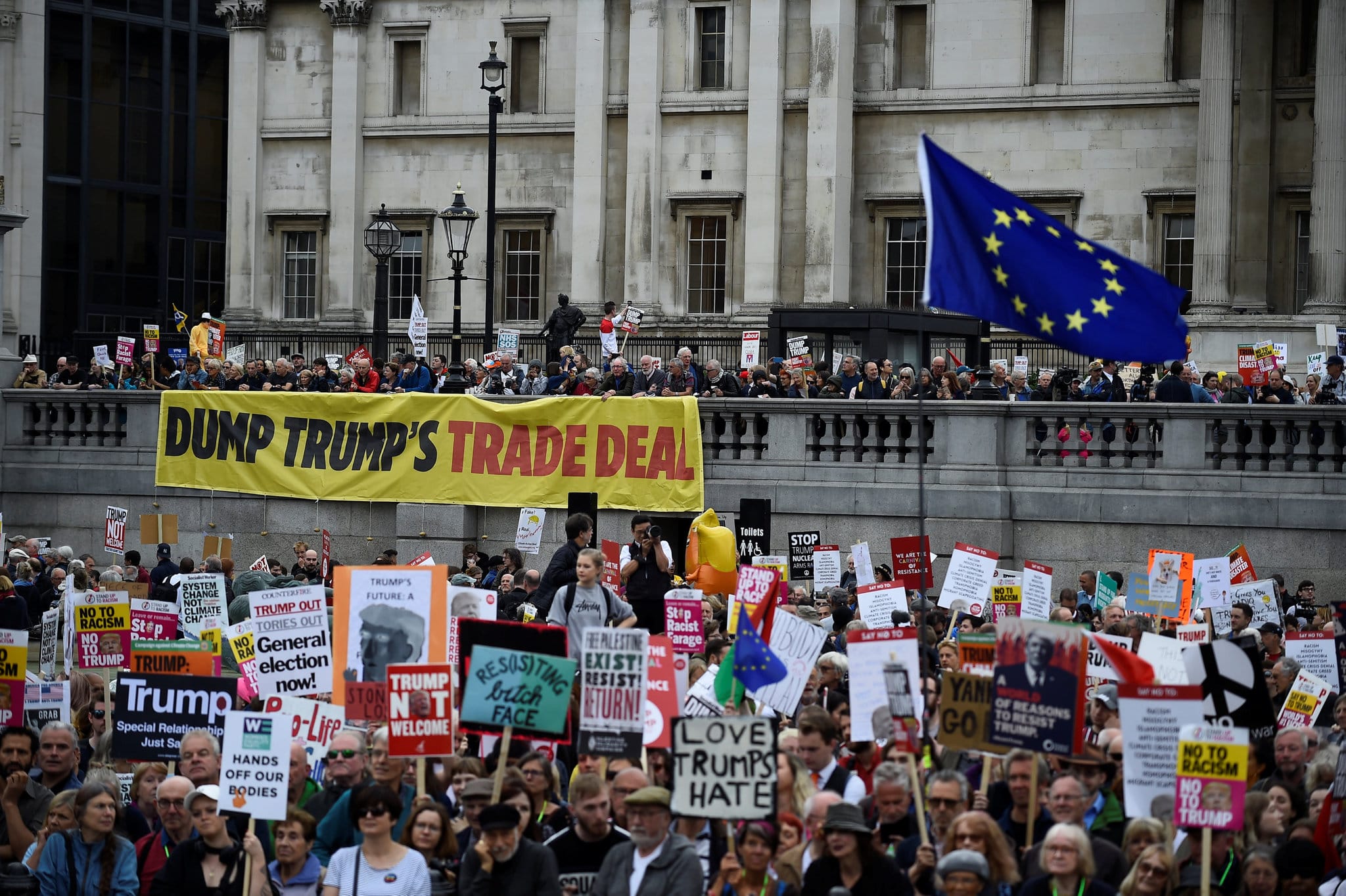 ଲଣ୍ଡନ ସ୍ଥିତ ଆମେରିକାର ଦୂତାବାସ କାର୍ଯ୍ୟାଳୟ ସମ୍ମୁଖରେ ନବ ନିର୍ବାଚିତ ଆମେରିକା ରାଷ୍ଟ୍ରପତି ଡୋନାଲ୍ଡ ଟ୍ରମ୍ପଙ୍କ ବିରୋଧୀମାନେ ବିକ୍ଷୋଭ ପ୍ରଦର୍ଶନ କରିଛନ୍ତି। ଗର୍ଭପାତ ଓ ଅନ୍ୟ ପ୍ରସଙ୍ଗରେ ଟ୍ରମ୍ପଙ୍କ ଆଭିମୁଖ୍ୟକୁ ନେଇ ଏହି ବିରୋଧ ପ୍ରଦର୍ଶନ କରାଯାଇଛି। ଦୂତାବାସ କାର୍ଯ୍ୟାଳୟ ସମ୍ମୁଖରେ ବିକ୍ଷୋଭ ପ୍ରଦର୍ଶନ କରୁଥିବା ‘ଜଷ୍ଟ ଷ୍ଟପ୍ ଅଏଲ୍’ ସଂଗଠନର ପରିବେଶପ୍ରେମୀଙ୍କୁ ପୋଲିସ ଗିରଫ କରିଛି। ସେମାନେ କାର୍ଯ୍ୟାଳୟ ପ୍ରାଚୀରରେ ‘ନାରଙ୍ଗୀ’ ରଙ୍ଗ ଲଗାଇଥିଲେ। ଏହାପରେ ଗର୍ଭପାତକୁ ସମର୍ଥନ କରୁଥିବା ସଂଗଠନ ଓ ସମାଜକର୍ମୀଙ୍କ ପକ୍ଷରୁ ବିକ୍ଷୋଭ ପ୍ରଦର୍ଶନ କରାଯାଇଥିଲା। ଟ୍ରମ୍ପ୍ ଗର୍ଭପାତକୁ ବେଆଇନ ଘୋଷଣା କରିବା ସହ ଅନ୍ୟ କଡ଼ା ଆପ୍ରବାସନ ନୀତି କାର୍ଯ୍ୟକାରୀ କରିବେ ବୋଲି ସେମାନେ ଆଶଙ୍କା ପ୍ରକାଶ କରିଛନ୍ତି। ‘ଷ୍ଟାଣ୍ଡ୍ ଅପ୍ ଟୁ ଟ୍ରମ୍ପ୍ ଆଣ୍ଡ୍ ଷ୍ଟାଣ୍ଡ୍ ଅପ୍ ଟୁ ରେସିଜମ୍’ ସଂଗଠନ ପକ୍ଷରୁ ମଧ୍ୟ ବିକ୍ଷୋଭ ପ୍ରଦର୍ଶନ କରାଯାଇଥିଲା। ବିକ୍ଷୋଭକାରୀମାନେ ଟ୍ରମ୍ପ୍ଙ୍କୁ ‘ଘୃଣା ପ୍ରସାରକଙ୍କ ମୁଖିଆ’ ବୋଲି କହିଥିଲେ।