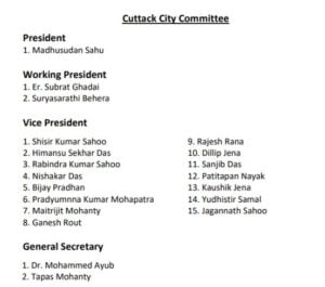 ୨୦୨୪ ସାଧାରଣ ନିର୍ବାଚନକୁ ନେଇ ରାଜ୍ୟର ପ୍ରମୁଖ ରାଜନୈତିକ ଦଳମାନେ ଏବେଠାରୁ ନିଜ ନିଜର ସଂଗଠନକୁ ସଜାଡ଼ିବା ଆରମ୍ଭ କରିଦେଇଛନ୍ତି ।ରାଜ୍ୟରେ କ୍ଷମତାରେ ଥିବା ବିଜୁ ଜନତା ଦଳ ପ୍ରସ୍ତୁତି ଜୋରଦାର ଚଳାଇଛି | ବିଜେଡି ସୁପ୍ରିମୋ ନବୀନ ପଟ୍ଟନାୟକ କିଛି ନୂଆ କର୍ମକର୍ତ୍ତାଙ୍କୁ ନୂଆ ପଦରେ ନିଯୁକ୍ତି ଦେଇଛନ୍ତି । କଟକ ନଗର କମିଟିକୁ ଦଳ ପକ୍ଷରୁ ପୁନର୍ଗଠନ କରାଯାଇଛି । କଟକ ନଗର ସଭାପତି ଭାବେ ମଧୁସୂଦନ ସାହୁଙ୍କୁ ନିଯୁକ୍ତି ଦିଆଯାଇଛି । ସେହିପରି କାର୍ଯ୍ୟକାରୀ ସଭାପତି ଭାବେ ଇଂ ସୁବ୍ରତ ଘଡ଼ାଇ ଓ ସୂର୍ଯ୍ୟସାରଥୀ ବେହେରାଙ୍କୁ ଦାୟିତ୍ୱ ଦିଆଯାଇଛି । ଏଥିସହ ୧୫ ଜଣ ଉପସଭାପତି, ୨ ଜଣ ସାଧାରଣ ସମ୍ପାଦକ, ୩୫ ଜଣ ସମ୍ପାଦକ, ଜଣେ କୋଷାଧ୍ୟକ୍ଷଙ୍କୁ ନିଯୁକ୍ତି ଦିଆଯାଇଛି । ସେହିପରି କଟକ ଜିଲ୍ଲା ବିଜେଡି କମିଟିର ମଧ୍ୟ ପୁନର୍ଗଠନ କରାଯାଇଛି । ଦେବାଶିଷ ସାମନ୍ତରାୟଙ୍କୁ କଟକ ଜିଲ୍ଲା କମିଟିର ସଭାପତି ଭାବେ ନିଯୁକ୍ତି ଦିଆଯାଇଛି । ଏଥିସହ ୩୪ ଜଣ ଉପସଭାପତି, ୩୦ ଜଣ ସାଧାରଣ ସମ୍ପାଦକ, ଜଣେ କୋଷାଧ୍ୟକ୍ଷ, ୫୩ ଜଣ ସମ୍ପାଦକ, ୮ ଜଣ ଯୁଗ୍ମ ସମ୍ପାଦକଙ୍କୁ ନିଯୁକ୍ତି ଦିଆଯାଇଛି ।