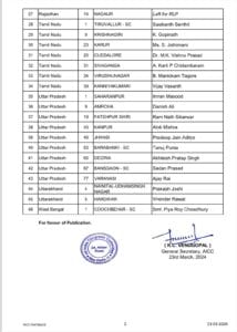 ଲୋକସଭା ନିର୍ବାଚନର ପ୍ରଥମ ପର୍ଯ୍ୟାୟ ଭୋଟ୍କୁ ଆଉ ମାସେରୁ କମ୍ ସମୟ ଥିବା ବେଳେ ଶନିବାର କଂଗ୍ରେସ ପକ୍ଷରୁ ଏହାର ଚତୁର୍ଥ ପର୍ଯ୍ୟାୟ ପ୍ରାର୍ଥୀ ତାଲିକା ପ୍ରକାଶ କରାଯାଇଛି। ଏଥିରେ ବିଭିନ୍ନ ରାଜ୍ୟ ଓ କେନ୍ଦ୍ର ଶାସିତ ଅଞ୍ଚଳର ୪୫ ଜଣଙ୍କ ନାଁ ରହିଛି। ଦଳର କେତେକ ବଡ଼ ନେତାଙ୍କ ନାଁ ଏହି ତାଲିକାରେ ରହିଛି। ମଧ୍ୟ ପ୍ରଦେଶର ପୂର୍ବତନ ମୁଖ୍ୟମନ୍ତ୍ରୀ ତଥା ଦଳର ବରିଷ୍ଠ ନେତା ଦିଗବିଜୟ ସିଂହଙ୍କୁ ରାଜଗଡ଼ରୁ ପ୍ରାର୍ଥୀ କରାଯାଇଛି। ସେ ଏବେ ରାଜ୍ୟସଭା ସାଂସଦ ଅଛନ୍ତି। କାର୍ତ୍ତି ପି ଚିଦାମ୍ବରମଙ୍କୁ ତାମିଲନାଡୁର ଶିବଗଙ୍ଗା ଆସନରୁ ପ୍ରାର୍ଥୀ କରିଛି ଦଳ। ସେ ୨୦୧୯ରେ ଏହି ଆସନରୁ ବିଜୟୀ ହୋଇଥିଲେ। ଦାନିଶ ଅଲୀଙ୍କୁ ଉତ୍ତର ପ୍ରଦେଶର ଅମରୋହାରୁ ଟିକେଟ୍ ଦିଆଯାଇଛି। ସେହିପରି ଅଜୟ ରାୟଙ୍କୁ ଦଳ ପୁଣି ଥରେ ବାରାଣସୀ ଆସନରୁ ପ୍ରାର୍ଥୀ କରିଛି। ସେ ଏଠାରେ କ୍ରମାଗତ ତୃତୀୟ ଥର ପାଇଁ ପ୍ରଧାନମନ୍ତ୍ରୀ ନରେନ୍ଦ୍ର ମୋଦିଙ୍କ ବିପକ୍ଷରେ ଲଢ଼ିବେ। ପୂର୍ବତନ କେନ୍ଦ୍ରମନ୍ତ୍ରୀ କାନ୍ତିଲାଲ ଭୂରିଆଙ୍କୁ ମଧ୍ୟପ୍ରଦେଶର ରତଲାମ ଆସନରୁ ଟିକେଟ ଦିଆଯାଇଥିବା ବେଳେ ଉତ୍ତରାଖଣ୍ଡର ପୂର୍ବତନ ମୁଖ୍ୟମନ୍ତ୍ରୀ ହରିଶ ରାୱତଙ୍କ ପୁଅ ବୀରେନ୍ଦ୍ର ରାୱତଙ୍କୁ ହରିଦ୍ୱାରରୁ ଟିକେଟ ଦିଆଯାଇଛି। କଂଗ୍ରେସ ପ୍ରଥମ ଥର ପାଇଁ ଉତ୍ତର ପ୍ରଦେଶର ୯ଟି ଆସନ ପାଇଁ ପ୍ରାର୍ଥୀ ଘୋଷଣା କରିଛି। ତେବେ ଦଳ ଏବେ ବି ଅମେଠି ଓ ରାଏ ବରେଲୀ ଆସନକୁ ନେଇ ସସପେନ୍ସ ଜାରି ରଖିଛି। ଏହି ଦୁଇଟି ଆସନ କଂଗ୍ରେସର ଗଡ଼। ତେବେ ୨୦୧୯ରେ ଅମେଠିରୁ ରାହୁଲ ଗାନ୍ଧି ହାରି ଯାଇଥିଲେ। ରାହୁଲ ଏଥର ପୁଣି ଏହି ଆସନରୁ ଲଢ଼ିପାରନ୍ତି। ତା’ସହିତ ସେ କେରଳ ୱାୟନାଡ଼ ଆସନରୁ ମଧ୍ୟ ଲଢ଼ିବେ | ରାଏ ବରେଲୀ ଆସନରୁ କଂଗ୍ରେସ ସାଧାରଣ ସଂପାଦକ ପ୍ରିୟଙ୍କା ଗାନ୍ଧି ଭଦ୍ରା ପ୍ରାର୍ଥୀ ହୋଇପାରନ୍ତି ବୋଲି କୁହାଯାଉଛି। ଏହି ଆସନରୁ ତାଙ୍କ ମା’ ସୋନିଆ ଗାନ୍ଧି ଜିତି ଆସୁଥିବା ବେଳେ ଏଥର ସେ ଆଉ ପ୍ରାର୍ଥୀ ହେବେ ନାହିଁ। ସେ ରାଜସ୍ଥାନରୁ ରାଜ୍ୟସଭାକୁ ନିର୍ବାଚିତ ହୋଇସାରିଛନ୍ତି।