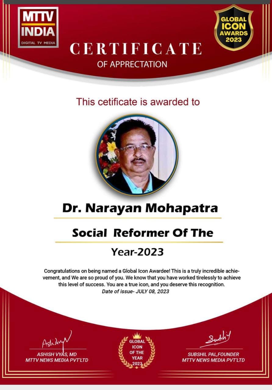 ଡ ନାରାୟଣ ମହାପାତ୍ର ଙ୍କୁ ଗ୍ଲୋବାଲ ଆଇକନ ଆୱାର୍ଡ ୨୦୨୩……