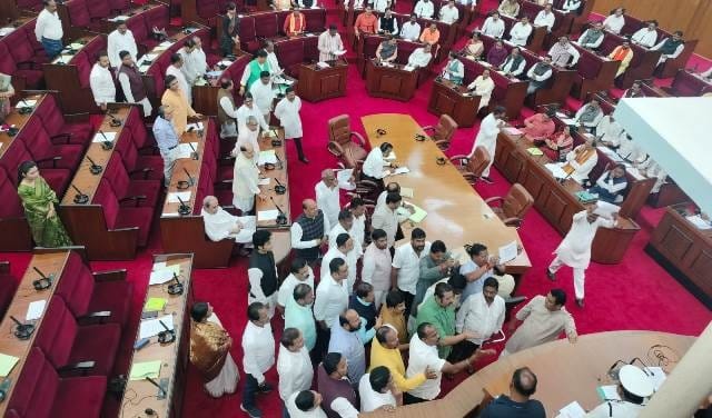 ଆଜି ବିଧାନସଭାରେ ପ୍ରଶ୍ନକାଳ ଆରମ୍ଭରୁ ଗୃହରେ ହଟ୍ଟଗୋଳ ସ୍ଥିତି ଦେଖାଦେଇଛି । ଫଳରେ ବାଚସ୍ପତି ସୁରମା ପାଢୀ ଦିନ ୧୧ଟା ୩୦ ଯାଏଁ ଗୃହକୁ ମୁଲତବୀ ଘୋଷଣା କରିଛନ୍ତି । ମୁଖ୍ୟମନ୍ତ୍ରୀଙ୍କ ବିବୃତ୍ତିକୁ ବିରୋଧ କରି ଗୃହରେ ହଟ୍ଟଗୋଳ ସହ ହୋହଲ୍ଲା ହୋଇଛି । ଗତକାଲି ଏଏସଓ ଚାକିରି ବିକ୍ରି ହୋଇଥିବା ଗୃହରେ ବିବୃତ୍ତି ରଖିଥିଲେ ମୁଖ୍ୟମନ୍ତ୍ରୀ । ବାଚସ୍ପତିଙ୍କ ପୋଡିୟମ୍‌ ତଳେ ବିଜେଡିର ହୋହଲ୍ଲା, ନାରାବାଜି ପରେ ଗୃହକୁ ମୁଲତବୀ ଘୋଷଣା କରାଯାଇଛି ।