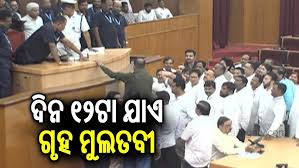 ବିଧାନସଭାରେ ଅଚଳାବସ୍ଥା ଦେଖାଦେଇଛି। ଗୃହ ଆରମ୍ଭରୁ ପ୍ରବଳ ହଟ୍ଟଗୋଳ କାରଣରୁ ମଧ୍ୟାହ୍ନ ୧୨ଟା ଯାଏଁ ଗୃହକୁ ମୁଲତବୀ ଘୋଷଣା କରିଛନ୍ତି ବାଚସ୍ପତି ସୁରମା ପାଢୀ। ବିଧାନସଭା ଆରମ୍ଭରୁ ହିଁ ବିରୋଧୀ ପ୍ରବଳ ହଟ୍ଟଗୋଳ ଓ ନାରାବାଜି କରିଥିଲେ। ଉଭୟ ବିଜେଡି ଓ କଂଗ୍ରେସ ଗୃହ ମଧ୍ୟଭାଗକୁ ଆସି ପ୍ରବଳ ହଟ୍ଟଗୋଳ କରିଥିଲେ। ଆଇନ ଶୃଙ୍ଖଳା ବିପର୍ଯ୍ୟସ୍ତ ଅଭିଯୋଗ କରି କଂଗ୍ରେସ ହୋ ହାଲ୍ଲା କରିଥିବାବେଳେ ଏପଟେ ଚାଷୀ ମାରଣ ନୀତି ଓ କଟନୀ ଛଟନୀ ଅଭିଯୋଗରେ ବିଜେଡି ବିଧାୟକଙ୍କ ବିକ୍ଷୋଭ ଦେଖିବାକୁ ମିଳିଥିଲା। ଫଳରେ ଚାଲିପାରି ନଥିଲା ଗୃହକାର୍ଯ୍ୟ। ଏହାପରେ ଗୃହକୁ ମଧ୍ୟାହ୍ନ ୧୨ଟା ଯାଏଁ ଗୃହକୁ ମୁଲତବୀ ଘୋଷଣା କରିଛନ୍ତି ବାଚସ୍ପତି।
