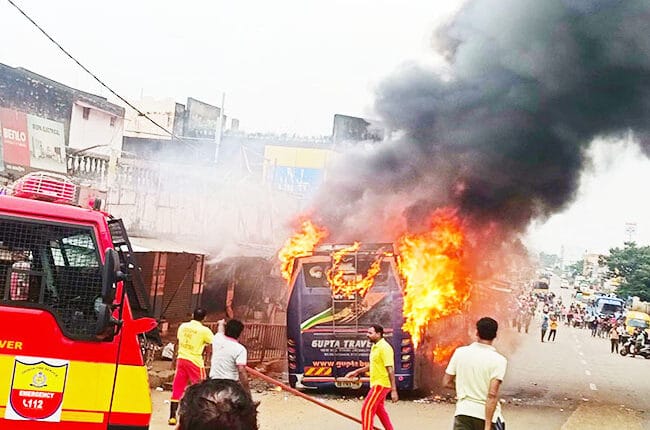 ବୋରିଗୁମ୍ମା ବସଷ୍ଟାଣ୍ଡ ନିକଟରେ ଯାତ୍ରୀବାହୀ ବସ୍ ଜଳିଯାଇଛି | ହାଇଦ୍ରାବାଦ ଠାରୁ ସିନାପାଲି ଯାଉଥିବା ଗୁପ୍ତା ବସରେ ନିଆଁ ଲାଗିଯାଇଥିବା ସୂଚନା ମିଳିଛି। ସୌଭାଗ୍ୟବଶତଃ ଅଳ୍ପକେ ସମସ୍ତ ଯାତ୍ରୀ ସୁରକ୍ଷିତ ଅଛନ୍ତି। ସୂଚନା ଅନୁସାରେ, ବସ୍ଟି ବୋରିଗୁମ୍ମା ବସଷ୍ଟାଣ୍ଡରେ ଠିଆ ହେଇଥିବା ସମୟରେ ଟାୟାର ଫାଟି ହଠାତ୍ ନିଆଁ ଲାଗି ଯାଇଥିଲା । ବସ୍ରେ ନିଆଁ ଲାଗିବା ଫଳରେ ସମସ୍ତ ଯାତ୍ରୀ ସଙ୍ଗେ ସଙ୍ଗେ ଓହ୍ଲାଇ ପଡ଼ିଥିଲେ । ଘଟଣା ସ୍ଥଳରେ ଅଗ୍ନିଶମବାହିନୀ ପହଞ୍ଚି ନିଆଁକୁ ଆୟତ୍ତ କରିଥିବା ଜଣାପଡ଼ିଛି।