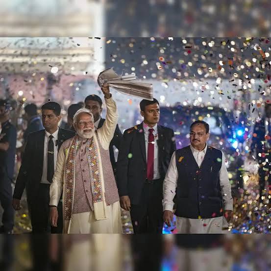 ବିହାରରେ ଏନଡିଏର ବିଜୟ ପରେ ପ୍ରଧାନମନ୍ତ୍ରୀ ନରେନ୍ଦ୍ର ମୋଦୀ ଗାମୁଛା ଉଡ଼ାଇ ଉତ୍ସବ ମନାଇଛନ୍ତି। ଦିଲ୍ଲୀ ବିଜେପି କାର୍ଯ୍ୟାଳୟରେ ଶୁକ୍ରବାର ସନ୍ଧ୍ୟାରେ ଏହି ଦୃଶ୍ୟ ଦେଖିବାକୁ ମିଳିଥିଲା। କାର୍ଯ୍ୟାଳୟରେ ମୋଦୀ ପହଞ୍ଚିବା ପରେ ଏକ ଧଳା ଗାମୁଛାକୁ ବାମ ହାତରେ ଧରି ଉଡ଼ାଇଥିଲେ। ଏହା ପରେ ପ୍ରଧାନମନ୍ତ୍ରୀଙ୍କୁ ବିଜେପି ରାଷ୍ଟ୍ରୀୟ ଅଧ୍ୟକ୍ଷ ଜେ.ପି. ନଡ୍ଡା, ପ୍ରତିରକ୍ଷା ମନ୍ତ୍ରୀ ରାଜନାଥ ସିଂହ ଏବଂ ସ୍ଵରାଷ୍ଟ୍ର ମନ୍ତ୍ରୀ ଅମିତ ଶାହ ଏକ ମାଖନା ମାଳ ପିନ୍ଧାଇ ଭବ୍ୟ ସମ୍ବର୍ଦ୍ଧନା ଦେଇଥିଲେ। ଏହି ଅବସରରେ ପ୍ରଧାନମନ୍ତ୍ରୀ କହିଥିଲେ, ବିହାରବାସୀ ବିକଶିତ ବିହାର ପାଇଁ ଭୋଟ ଦେଇଛନ୍ତି। ରାଜ୍ୟରେ ଆଉ କେବେ ଜଙ୍ଗଲରାଜ ଫେରିବନି। ବିହାରରେ ବିପୁଳ ବିଜୟ ରାଜ୍ୟବାସୀଙ୍କ ଅତୁଟ ବିଶ୍ଵାସର ପ୍ରତିଫଳନ। ମିଥ୍ୟାର ପରାଜୟ ହୁଏ। ଜାମିନରେ ଫେରିଥିବା ଲୋକଙ୍କ ସାଥ୍ ଦେଲେନି ରାଜ୍ୟବାସୀ। ଗଣତନ୍ତ୍ରକୁ ଆକ୍ରମଣ କରୁଥିବା ଲୋକଙ୍କୁ ରାଜ୍ୟବାସୀ ଉଚିତ ଜବାବ ଦେଇଛନ୍ତି। ଉଦବୋଧନ ସମୟରେ ମୋଦୀ ନୂଆପଡ଼ା ଉପନିର୍ବାଚନ କଥା ଉଠାଇଥିଲେ। ନୂଆପଡ଼ାରେ ବିଜେପି ପ୍ରାର୍ଥ ଜୟ ଢୋଲକିଆ ବିଜୟୀ ହୋଇଥିବାରୁ ସେ ନୂଆପଡ଼ାବାସୀଙ୍କୁ କୃତଜ୍ଞତା ଜଣାଇଥିଲେ। ନଡ୍ଡା କହିଥିଲେ, ବିହାର ନିର୍ବାଚନ ବିକାଶ ବନାମ ଜଙ୍ଗଲରାଜ ମଧ୍ୟରେ ଥିଲା। ବିହାରରେ ଏନଡିଏର ବିଜୟ ପାଇଁ ସେ ଦଳର କୋଟି କୋଟି କର୍ମୀଙ୍କ ତରଫରୁ ପ୍ରଧାନମନ୍ତ୍ରୀଙ୍କୁ ଧନ୍ୟବାଦ ଜଣାଉଛନ୍ତି ବୋଲି କହିଥିଲେ। ବିହାରରେ ଏନଡିଏର ବିଜୟ ସୁନାମୀ ପରି ଥିଲା ବୋଲି ସେ କହିଥିଲେ।