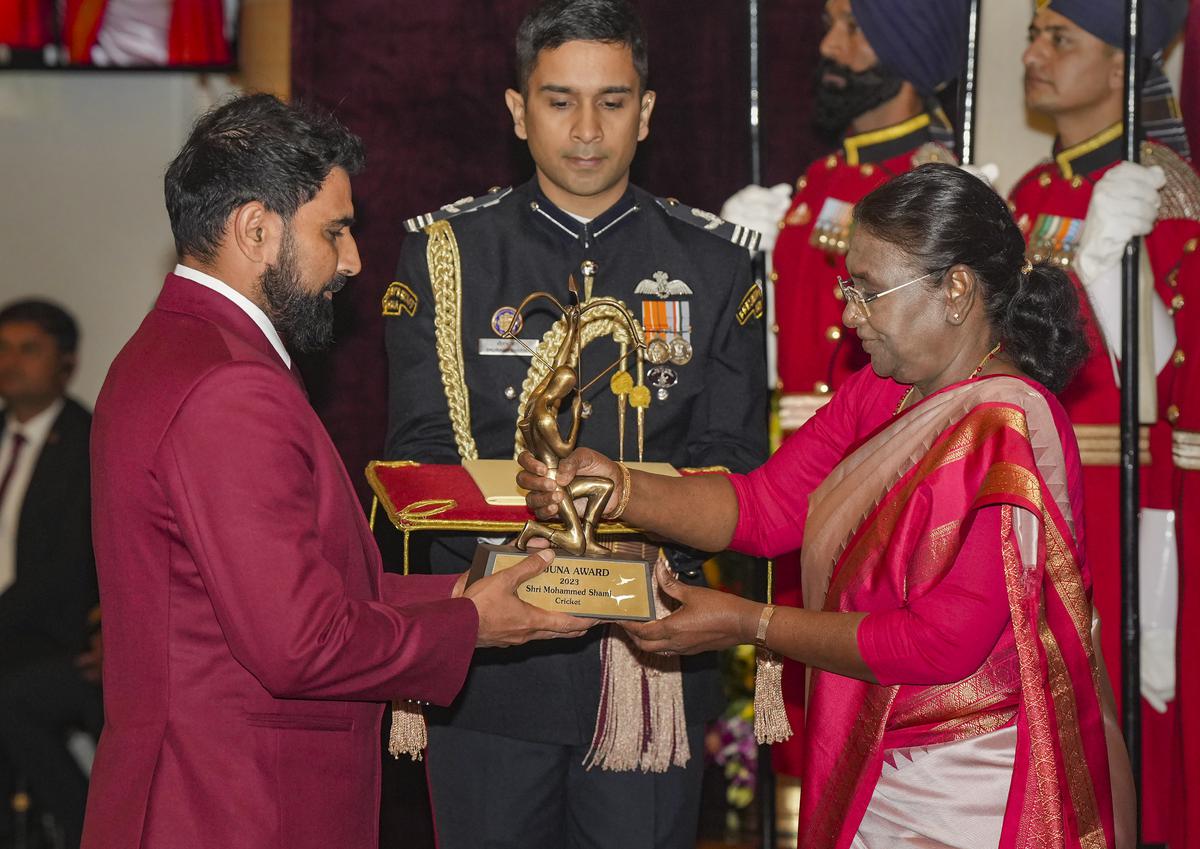ପୂର୍ବରୁ ୨୦୨୩ ବର୍ଷ ପାଇଁ ଭାରତୀୟ କ୍ରୀଡ଼ା ପୁରସ୍କାର ଘୋଷଣା କରାଯାଇଥିବା ବେଳେ ଆଜିକୁ ଭାରତର ଦ୍ରୁତ ବୋଲର ମହମ୍ମଦ ସାମିଙ୍କୁ ରାଷ୍ଟ୍ରପତି ଦ୍ରୌପଦୀ ମୁର୍ମୁ ଅର୍ଜୁନ ପୁରସ୍କାର ପ୍ରଦାନ କରିଛନ୍ତି। ଦିନିକିଆ ଅନ୍ତର୍ଜାତୀୟ ବିଶ୍ବକପ୍ ୨୦୨୩ରେ ତାଙ୍କର ଚମତ୍କାର ପ୍ରଦର୍ଶନ ପାଇଁ ଭାରତୀୟ କ୍ରିକେଟ୍ ବୋର୍ଡ ବିସିସିଆଇ ସାମିଙ୍କ ନାମ ସୁପାରିସ କରିଥିଲା। ସାମି ବିଶ୍ୱକପ୍ ୨୦୨୩ର ଶ୍ରେଷ୍ଠ ବୋଲର୍ ପାଲହୋଇଥିଲେ। ସେ ୭ଟି ମ୍ୟାଚ୍ରେ ୨୪ ୱିକେଟ୍ ନେଇଥିଲେ। ଚଳିତବର୍ଷ ଅର୍ଜୁନ ପୁରସ୍କାର ପାଇଁ ମନୋନୀତ ହୋଇଥିବା ୨୬ ଜଣ କ୍ରୀଡ଼ାବିତଙ୍କ ତାଲିକାରେ ପାରା ତୀରନ୍ଦାଜ ଶୀତଲ ଦେବୀଙ୍କ ନାମ ମଧ୍ୟ ରହିଛି। ଅଜୁର୍ନ ପୁରୁସ୍କାର ପାଇବାକୁ ଥିବା କ୍ରୀଡ଼ାବିତ୍ମାନଙ୍କ ମଧ୍ୟରେ ରହିଛିନ୍ତି -ଓଜସ ପ୍ରବୀଣ ଦେଓତାଲେ (ତୀରନ୍ଦାଜି), ଅଦିତି ଗୋପୀଚାନ୍ଦ ସ୍ୱାମୀ (ତୀରନ୍ଦାଜି), ଶ୍ରୀଶଙ୍କର (ଆଥଲେଟିକ୍ସ), ପାରୁଲ ଚୌଧୁରୀ (ଆଥଲେଟିକ୍ସ), ମହମ୍ମଦ ହୁସାମୁଦ୍ଦିନ (ବକ୍ସର), ଆର ବୈଶାଳୀ (ଚେସ୍), ମହମ୍ମଦ ସାମି (କ୍ରିକେଟ୍), ଅନୁଷ ଅଗ୍ରୱାଲ (ଅଶ୍ୱାରୋହୀ), ଦିକ୍ଷା ଡାଗର (ଗଲ୍ଫ), କ୍ରିଷନ ବାହାଦୁର ପାଠକ (ହକି), ସୁଶୀଲା ଚାନୁ (ହକି), ପବନ କୁମାର (କବାଡି), ରିତୁ ନେଗି (କବାଡି), ନସରିନ (ଖୋ-ଖୋ), ପିଙ୍କି (ଲନ୍ ବାଉଲ୍ସ), ଐଶ୍ୱର୍ଯ୍ୟା ପ୍ରତାପ ସିଂହ ତୋମାର (ସୁଟିଂ)। ଇଶା ସିଂହ (ସୁଟିଂ), ହରିନ୍ଦର ପାଲ ସିଂହ (ସ୍କ୍ୱାଶ), ଆୟିକା ମୁଖାର୍ଜୀ (ଟେବୁଲ ଟେନିସ), ସୁନୀଲ କୁମାର (କୁସ୍ତି), ଆଣ୍ଟିମ୍ (କୁସ୍ତି), ରୋଶିବିନା ଦେବୀ (ଉଶୁ), ଶୀତଲ ଦେବୀ (ପାରା ଆର୍ଚରୀ), ଅଜୟ କୁମାର (ଦୃଷ୍ଟିହୀନ କ୍ରିକେଟ), ପ୍ରାଚୀ ଯାଦବ (ପାରା କ୍ୟାନୋଇଙ୍ଗ୍)।