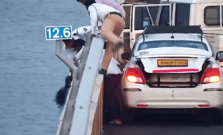 ଜୀବନ ହାରୁଥିବା ମହିଳାଙ୍କ ଜୀବନ ବଞ୍ଚାଇଲେ କ୍ୟାବ ଚାଳକ। କ୍ୟାବରେ ଯାଉଥିବା ବେଳେ ହଠାତ୍ ଗାଡ଼ି ଅଟକାଇବାକୁ କହି ଅଟଳ ସେତୁ ଉପରକୁ ଡେଇଁବାକୁ ଚଢ଼ିଥିଲେ ମହିଳା। ହେଲେ ଠିକ ସମୟରେ କ୍ୟାବ ଚାଳକ ତାଙ୍କୁ ଧରି ପକାଇଥିଲେ। କିଛି ସେକେଣ୍ଡ ପରେ ପୋଲିସ ଟିମ୍ ପହଞ୍ଚି ନିଜ ଜୀବନକୁ ବିପଦରେ ପକାଇ ସାହସ ଦେଖାଇବା ସହ ରେଲିଂ ଉପରେ ଚଢ଼ି ମହିଳାଙ୍କ ଜୀବନ ରକ୍ଷା କରିଥିଲେ। ଏହି ଘଟଣାର ଭିଡିଓ ଏବେ ସାମ୍ନାକୁ ଆସିଛି। ପୋଲିସ ଅଧିକାରୀଙ୍କ କହିବାନୁସାରେ, ୫୬ବର୍ଷୀୟା ମହିଳା ରୀମା ମୁକେଶ ପଟେଲ ମୁମ୍ବାଇର ମୁଲୁଣ୍ଡର ବାସିନ୍ଦା। ରୀମା ଏକ କ୍ୟାବ ବୁକ୍ କରି ଅଟଳ ସେତୁ ମଝିରେ ପହଞ୍ଚିବା ପରେ ଡ୍ରାଇଭରକୁ କାର ରୋକିବାକୁ କହିଥିଲେ। କାର୍ ଅଟକିବା ପରେ ରୀମା କାରରୁ ଓହ୍ଲାଇ ବ୍ରିଜର ରେଲିଂ ଉପରକୁ ଚଢ଼ିଯାଇଥିଲା। ଏହା ପରେ ସେ ସମୁଦ୍ରକୁ ଡେଇଁବାକୁ ଉଦ୍ୟମ କରୁଥିବା ବେଳେ କ୍ୟାବ ଚାଳକ ତାଙ୍କ ଚୁଟିକୁ ଧରି ପକାଇଥିଲେ। ଅନ୍ୟପକ୍ଷରେ ଅଟଳ ସେତୁରେ ବିଭିନ୍ନ ସ୍ଥାନରେ ସିସିଟିଭି ଲାଗିଥିବାରୁ କଣ୍ଟ୍ରୋଲ ରୁମ ପାଖରେ ଏହି ଖବର ପହଞ୍ଚିଥିଲା। ତୁରନ୍ତ ୪ଜଣ ପୋଲିସକର୍ମୀ ଏହି ଖବର ପାଇ ଘଟଣାସ୍ଥଳରେ ପହଞ୍ଚିବା ପରେ କ୍ୟାବଚାଳକ ମହିଳାଙ୍କୁ ଉପରକୁ ଉଠାଇବାକୁ ଚେଷ୍ଟା କରୁଥିବା ଦେଖିଥିଲେ। ଏହା ଦେଖି ୪ଜଣ ପୋଲିସକର୍ମୀ ନିଜ ଜୀବନକୁ ବିପଦରେ ପକାଇ ମହିଳାଙ୍କୁ ଉପରକୁ ଟାଣି ଆଣିଥିଲେ। ତେବେ ମହିଳାଜଣକ ଏଭଳି ଜୀବନ ହାରିବାକୁ କାହିଁକି ଚାହୁଥିଲେ, ତାହା ଜଣାପଡିନାହିଁ |