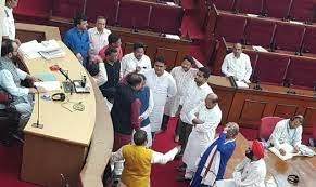 ଶୁକ୍ରବାରଠାରୁ ବିଧାନସଭା ବଜେଟ ଅଧିବେଶନର ଦ୍ବିତୀୟ ପର୍ଯ୍ୟାୟ ଆରମ୍ଭ ହୋଇଛି। ତେବେ ଆରମ୍ଭରୁ ପୂର୍ବତନ ସ୍ବାସ୍ଥ୍ୟମନ୍ତ୍ରୀ ନବ ଦାସ ହତ୍ୟାକାଣ୍ଡ ତଦନ୍ତକୁ ନେଇ ବିରୋଧୀ ଦଳ ବିଧାନସଭାରେ ପ୍ରବଳ ହଟ୍ଟଗୋଳ କରିଛନ୍ତି। ବିରୋଧୀଙ୍କ ହଟ୍ଟଗୋଳ ଯୋଗୁ ବାଚସ୍ପତି ବିକ୍ରମ କେଶରୀ ଆରୁଖ ବିଭିନ୍ନ ପର୍ଯ୍ୟାୟରେ ଗୃହକୁ ଆସନ୍ତା ସୋମବାର ପୂର୍ବାହ୍ନ ୧୦ଟା ୩୦ ମିନିଟ ଯାଏ ମୁଲତବୀ ଘୋଷଣା କରିଛନ୍ତି। ଉଲ୍ଲେଖ ଯୋଗ୍ୟ- ଶୁକ୍ରବାର ପୂର୍ବାହ୍ନ ୧୦ଟା ୩୦ ମିନିଟରେ ବିଧାନସଭା ଗୃହ କାର୍ଯ୍ୟ ଆରମ୍ଭ ହୋଇଥିଲା। ବାଚସ୍ପତି ପ୍ରଶ୍ନକାଳ ଆରମ୍ଭ କରିବା ମାତ୍ରେ କଂଗ୍ରେସ ସଦସ୍ୟମାନେ ଆଇନ ଶୃଙ୍ଖଳା, ନବ ଦାସ ହତ୍ୟାକାଣ୍ଡ ଘଟଣାରେ ମୁଖ୍ୟମନ୍ତ୍ରୀଙ୍କ ଇସ୍ତଫା ଦାବି କରି ଗୃହର ମଧ୍ୟଭାଗକୁ ଆସି ପାଟିତୁଣ୍ଡ କରିଥିଲେ। ବିଜେପି ସଦସ୍ୟମାନେ ମଧ୍ୟ ନବ ଦାସ ହତ୍ୟା ଘଟଣାର ସିବିଆଇ ତଦନ୍ତ ଦାବି କରି ହୋହଲ୍ଲା କରିଥିଲେ।