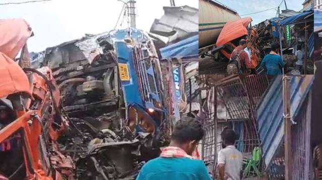 ବ୍ରହ୍ମପୁରର ସମରଝୋଳ ଛକରେ ମର୍ମନ୍ତୁଦ ସଡ଼କ ଦୁର୍ଘଟଣା ଘଟିଛି। ତେଲ ଟ୍ୟାଙ୍କରଟି ଏକ ଟ୍ରକ୍‌କୁ ଓଭରଟେକ୍‌ କରିବାକୁ ଯାଇ ଯାତ୍ରୀବାହୀ ବସ୍‌ ସହ ମୁହାଁମୁହିଁ ଧକ୍କା ହୋଇଥିଲା। ଏହି ଦୁର୍ଘଟଣାରେ ୪ ଜଣଙ୍କ ମୃତ୍ୟୁ ହୋଇଥିବା ବେଳେ ୨୦ ଜଣ ଗୁରୁତର ହୋଇଛନ୍ତି। ‘ଖମ୍ବେଶ୍ୱରୀ’ ନାମକ ଯାତ୍ରୀବାହୀ ବସ୍‌ ୪୦ରୁ ଊର୍ଦ୍ଧ୍ୱ ଯାତ୍ରୀ ଧରି ବ୍ରହ୍ମପୁର ଅଭିମୁଖେ ଆସୁଥିଲା। ଉକ୍ତ ସମୟରେ ତେଲ ଟାଙ୍କରଟି ବ୍ରହ୍ମପୁରରୁ ଆସ୍କା ପଟକୁ ଆସୁଥିଲା। କଞ୍ଜୁରୁ ଛକଠାରେ ତେଲ ଟ୍ୟାଙ୍କରଟି ଏକ ଟ୍ରକ୍‌କୁ ଓଭରଟେକ୍‌ କରିବାକୁ ଚେଷ୍ଟା କରୁଥିଲା। ମାତ୍ର ଗାଡ଼ିଟି ଭାରସାମ୍ୟ ହରାଇ ବିପରୀତ ଦିଗରୁ ଆସୁଥିବା ବସ୍‌ ସହ ମୁହାଁମୁହିଁ ଧକ୍କା ହୋଇଥିଲା। ଏହାପରେ ଦୁଇଟି ଗାଡ଼ି ରାସ୍ତା ପାର୍ଶ୍ୱରେ ଥିବା ଚା’ ଦୋକାନ ଉପରେ ମାଡ଼ି ଯାଇଥିଲା। ଫଳରେ ଘଟଣାସ୍ଥଳରେ ଚା’ ପିଉଥିବା ୩ ଜଣଙ୍କ ସମେତ ଜଣେ ବସ୍‌ ଯାତ୍ରୀଙ୍କ ମୃତ୍ୟୁ ହୋଇଛି। ଏଥିସହ ବସ୍‌ରେ ଥିବା ପ୍ରାୟ ୨୦ରୁ ଊର୍ଦ୍ଧ୍ୱ ଯାତ୍ରୀ ଗୁରୁତର ହୋଇଛନ୍ତି। ଖବର ପାଇ ତୁରନ୍ତ ପୋଲିସ ଓ ଅଗ୍ନିଶମ ବାହିନୀ କର୍ମଚାରୀ ଘଟଣାସ୍ଥଳରେ ପହଞ୍ଚି ଗୁରୁତରଙ୍କୁ ଉଦ୍ଧାର କରି ବ୍ରହ୍ମପୁରସ୍ଥିତ ଏମକେସିଜି ମେଡିକାଲକୁ ପଠାଇଛନ୍ତି। ଏଥିରେ ବସ୍‌ରେ ଆହୁରି କିଛି ଯାତ୍ରୀ ଚାପି ହୋଇଥିବା ଅନୁମାନ କରାଯାଉଛି। ଏହି ଦୁର୍ଘଟଣାରେ ମୃତକଙ୍କ ସଂଖ୍ୟା ବଢ଼ିପାରେ ବୋଲି ଆଶଙ୍କା କରାଯାଉଛି।