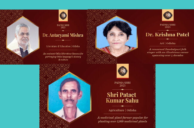 ରାଷ୍ଟ୍ରପତି ଦ୍ରୌପଦୀ ମୁର୍ମୁ ପଦ୍ମ ପୁରସ୍କାର ଅଳଙ୍କରଣ ସମାରୋହରେ ୨୦୨୩ ପାଇଁ ପଦ୍ମ ପୁରସ୍କାର ପ୍ରଦାନ କରିଛନ୍ତି । ରାଷ୍ଟ୍ରପତି ଭବନରେ ଆୟୋଜିତ ଭବ୍ୟ ସମାରୋହରେ ରାଷ୍ଟ୍ରପତି ବିଭିନ୍ନ କ୍ଷେତ୍ରରେ କୃତିତ୍ବ ହାସଲ କରିଥିବା ବ୍ୟକ୍ତିତ୍ବଙ୍କୁ ଏହି ମର୍ଯ୍ୟାଦାଜନକ ପୁରସ୍କାର ପ୍ରଦାନ କରିଛନ୍ତି । ଏହି ଅବସରରେ ଓଡ଼ିଶାର ୩ ଜଣ ପ୍ରସିଦ୍ଧ ବ୍ୟକ୍ତିତ୍ବଙ୍କୁ ପଦ୍ମଶ୍ରୀ ପୁରସ୍କାର ପ୍ରଦାନ କରାଯାଇଛି। ଓଡ଼ିଆ ସାହିତ୍ୟ ଓ ଶିକ୍ଷା ଜଗତକୁ ଉଲ୍ଲେଖନୀୟ ଅବଦାନ ପାଇଁ ପଣ୍ଡିତ ଅନ୍ତର୍ଯ୍ୟାମୀ ମିଶ୍ରଙ୍କୁ ରାଷ୍ଟ୍ରପତି ପଦ୍ମଶ୍ରୀ ପୁରସ୍କାର ପ୍ରଦାନ କରିଛନ୍ତି । ସେହିପରି କଳା କ୍ଷେତ୍ରକୁ ଅବଦାନ ପାଇଁ ଲୋକପ୍ରିୟ ସମ୍ବଲପୁରୀ ଗୀତ ରଙ୍ଗବତୀର ଗାୟିକା ଡକ୍ଟର କ୍ରିଷ୍ଣା ପଟେଲ ଓ କୃଷି (ଔଷଧିୟ ବୃକ୍ଷ ଚାଷ) କ୍ଷେତ୍ରକୁ ଅବଦାନ ପାଇଁ ପଟ୍ଟାୟତ କୁମାର ସାହୁଙ୍କୁ ରାଷ୍ଟ୍ରପତି ଦ୍ରୌପଦୀ ମୁର୍ମୁ ପଦ୍ମଶ୍ରୀ ପୁରସ୍କାର ପ୍ରଦାନ କରିଛନ୍ତି।
