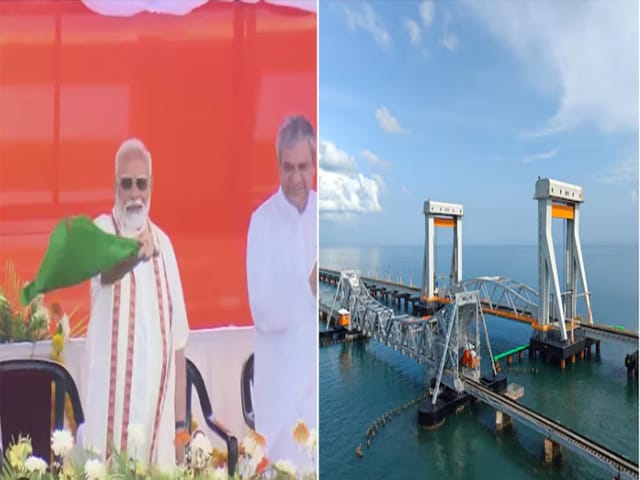 ଦେଶର ପ୍ରଥମ ଭର୍ଟିକାଲ ଲିଫ୍ଟ ସାମୁଦ୍ରିକ ସେତୁ ‘ପମ୍ବନ’ ଉଦ୍ଘାଟିତ ହୋଇଯାଇଛି। ରବିବାର ପ୍ରଧାନମନ୍ତ୍ରୀ ନରେନ୍ଦ୍ର ମୋଦୀ ତାମିଲନାଡ଼ୁର ରାମେଶ୍ଵରମରେ ୫୩୫ କୋଟି ଟଙ୍କା ବ୍ୟୟରେ ନିର୍ମିତ ପମ୍ବନ ସେତୁକୁ ଉଦ୍ଘାଟନ କରିଛନ୍ତି। ଏହା ସହିତ ସେ ରାଜ୍ୟରେ ଆହୁରି ଅନେକ ବିକାଶମୂଳକ ପ୍ରକଳ୍ପର ମଧ୍ୟ ଶୁଭାରମ୍ଭ କରିଛନ୍ତି। ଏହି କାର୍ଯ୍ୟକ୍ରମ ପୂର୍ବରୁ ଭାରତୀୟ ରେଳବାଇ ଏହି ନୂତନ ରେଳ ବ୍ରିଜର ଏକ ସୁନ୍ଦର ଭିଡିଓ ଜାରି କରିଥିଲା। ରେଳ ମନ୍ତ୍ରଣାଳୟ କହିଛି ଯେ, ସମୁଦ୍ର ଉପରେ ନିର୍ମିତ ଏହି ରେଳ ବ୍ରିଜ ଅତୀତ ଏବଂ ଭବିଷ୍ୟତକୁ ଯୋଡ଼ୁଛି। ଏହାକୁ ରାମ ନବମୀ ଦିନ ଦେଶବାସୀଙ୍କ ଉଦ୍ଦେଶ୍ୟରେ ଉତ୍ସର୍ଗ କରାଯିବ ଏବଂ ଏହି ସମୟରେ ପ୍ରଧାନମନ୍ତ୍ରୀ ମୋଦୀଙ୍କ ଉପସ୍ଥିତି ଯୋଗୁଁଁ ରାମେଶ୍ୱରମରେ ସୁରକ୍ଷା ବୃଦ୍ଧି କରାଯାଇଛି।