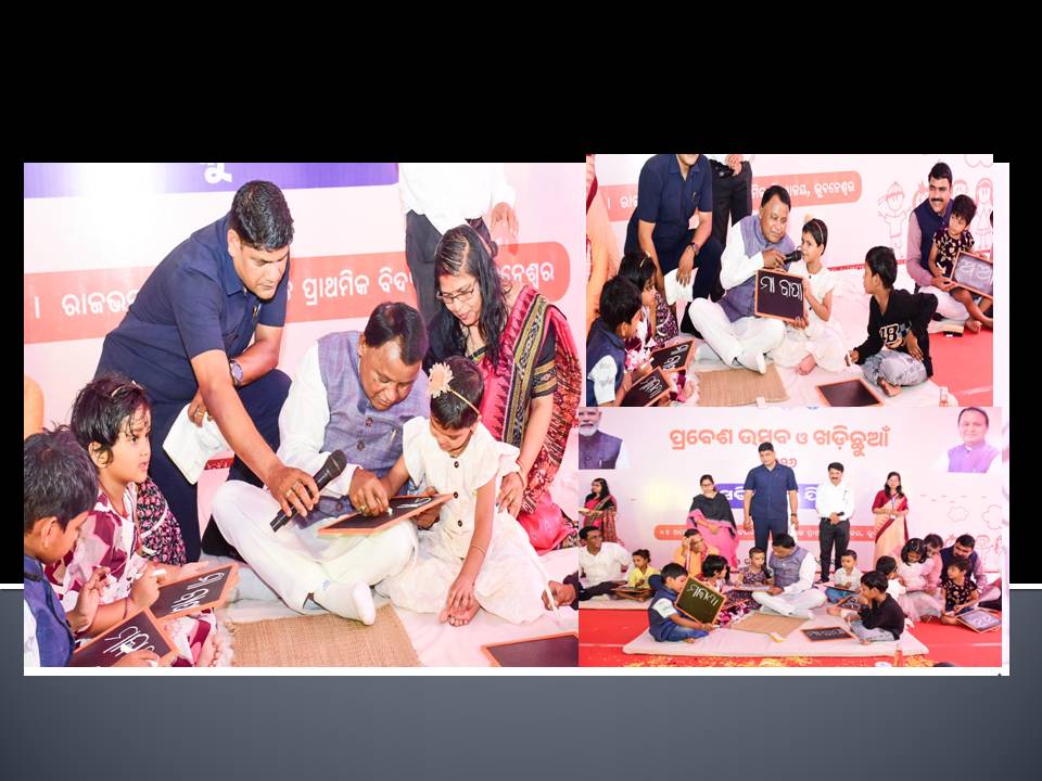 ସ୍କୁଲ ପ୍ରବେଶ ଅବସରରେ କୁନି କୁନି ପିଲାଙ୍କୁ ଶନିବାର ଖଡି ଛୁଆଁଇଲେ ମୁଖ୍ୟମନ୍ତ୍ରୀ ମୋହନ ଚରଣ ମାଝୀ। ରାଜଭବନ ଉଚ୍ଚ ପ୍ରାଥମିକ ବିଦ୍ୟାଳୟରେ ଏଥିପାଇଁ ଅନୁଷ୍ଠିତ ହେଉଥିବା କାର୍ଯ୍ୟକ୍ରମରେ ମୁଖ୍ୟମନ୍ତ୍ରୀ ଖଡି ଛୁଆଁଇଛନ୍ତି। କୁନି କୁନି ପିଲାଙ୍କ ସହ ଭାବ ବିନିମୟ ପରେ ଖଡି ଛୁଆଁଇଲେ। ଓଡ଼ିଆ ପକ୍ଷ ପାଳନ ଅବସରରେ ବିଦ୍ୟାଳୟ ଓ ଗଣଶିକ୍ଷା ବିଭାଗ ପକ୍ଷରୁ ପ୍ରବେଶ ଉତ୍ସବ ଓ ଖଡ଼ି ଛୁଆଁ ଉତ୍ସବ ପାଳନ କରାଯାଇଛି।