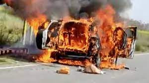 ଡମ୍ଫର ସହ କାର୍‌ ଧକ୍କା, ଜୀବନ୍ତ ଜଳିଗଲେ ୮…..